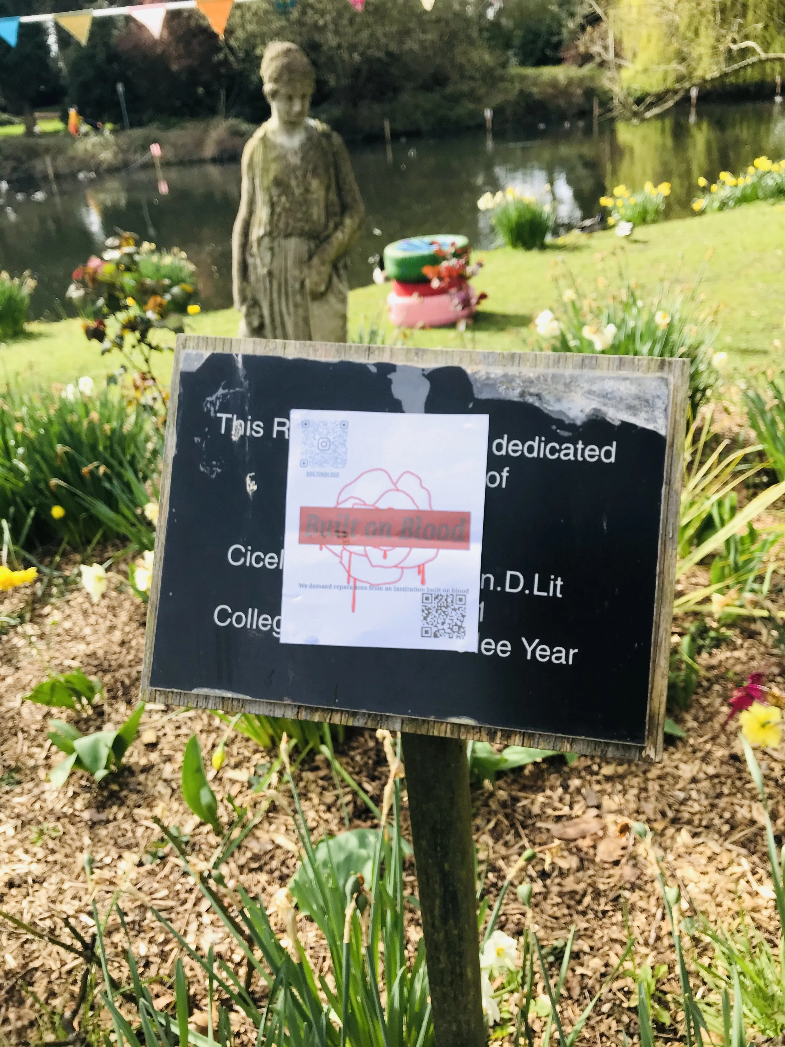 This image quickly became known across the campus as the symbol for an anonymous group of students, demanding reparations from an institution built on blood.